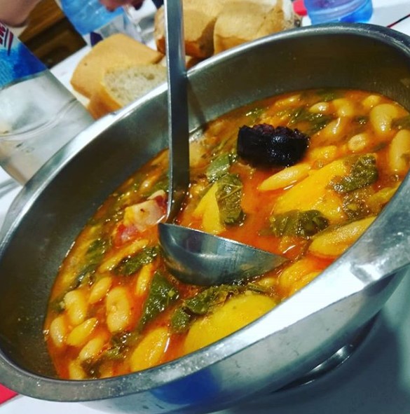 INGREDIENTES: Medio kilo de fabes blancas corrientes – unas hojas de berza – dos morcillas – dos chorizos – un cuarto kilo de lacón – cien gramos de tocino – un diente de ajo – un poco de pimentón – medio kilo de patatas – aceite y sal. Puede suprimirse el lacón por huesos de jamón.